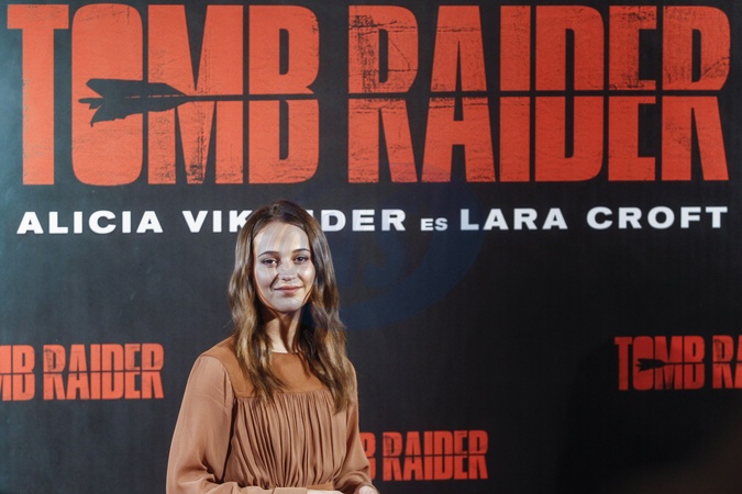 Alicia Vikander na czerwonym dywanie, photocall Tomb Raider