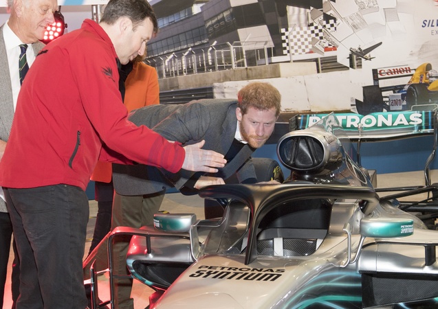 Ksiaze Harry podczas wizyty na Silverstone University Technical College
