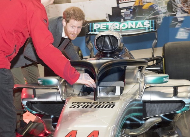 Ksiaze Harry podczas wizyty na Silverstone University Technical College