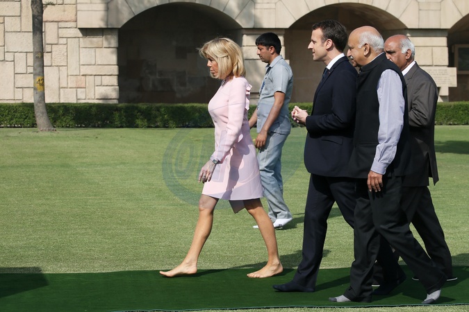 Brigitte Macron i Emmanuel Macron na boso ... New Delhi, Indie