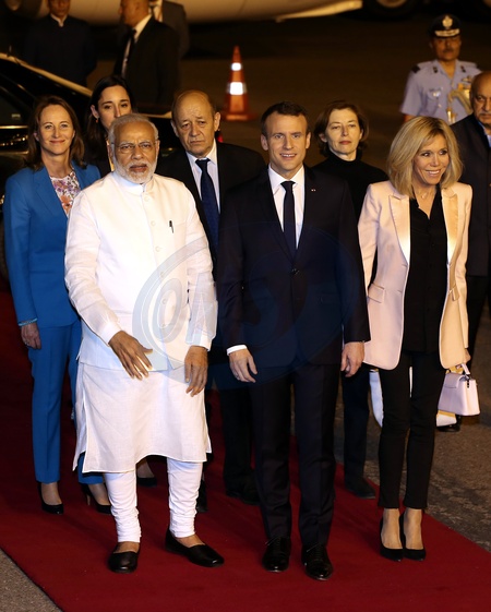 Narendra Modi, Emmanuel Macron, Brigitte Macron