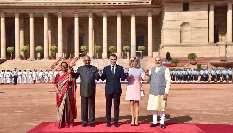 Brigitte Macron, Emmanuel Macron, Ram Nath Kovind z zona Savita, Narendra Modi