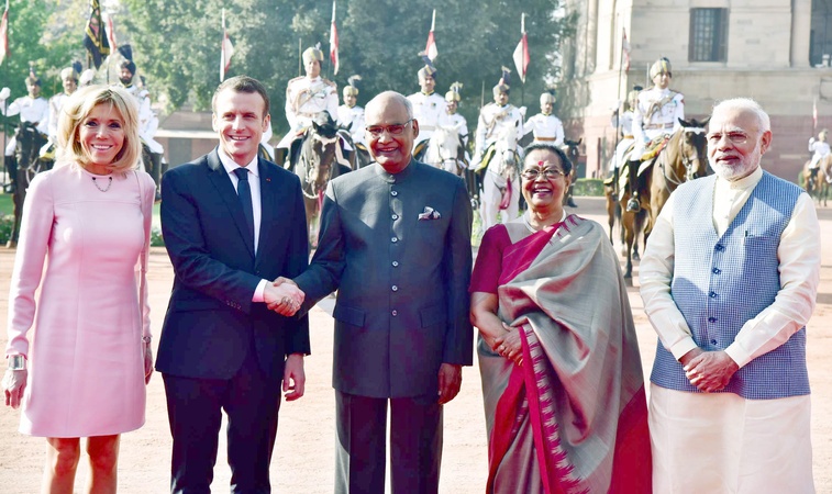 Brigitte Macron, Emmanuel Macron, lRam Nath Kovind, Savita Koving