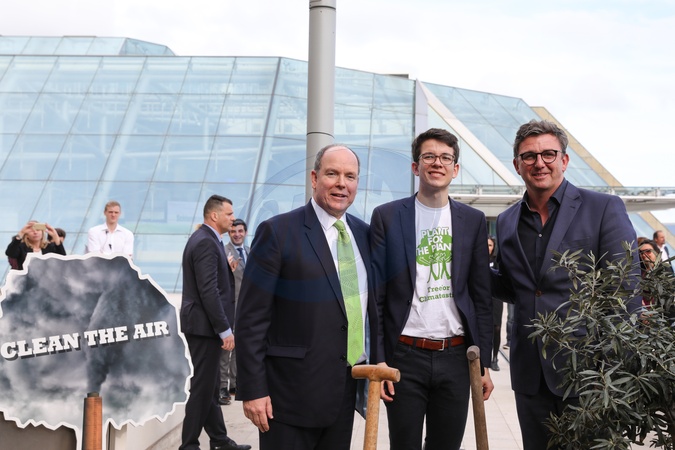 Ksiaze Albert w garniturze sadzi drzewo