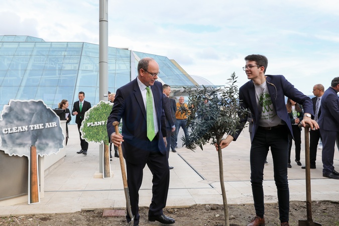 Ksiaze Albert w garniturze sadzi drzewo
