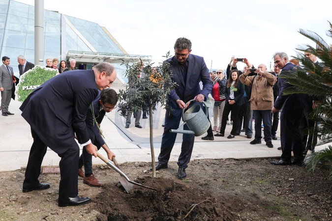 Ksiaze Albert w garniturze sadzi drzewo