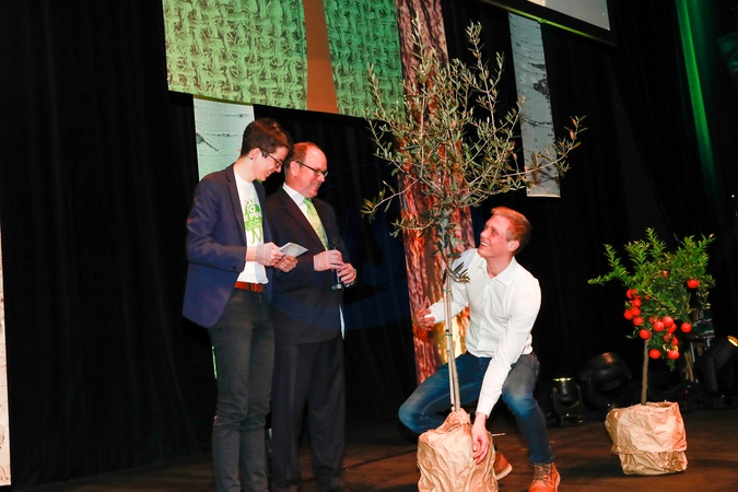 Ksiaze Albert w garniturze sadzi drzewo