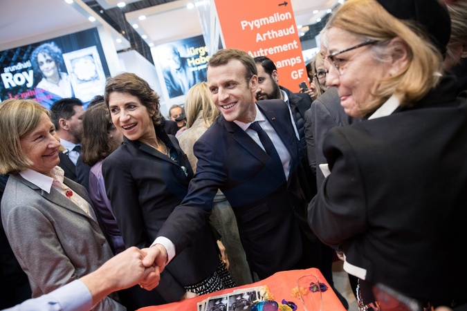 Brigitte Macron i Emmanuel Macron na targach ksiazki
