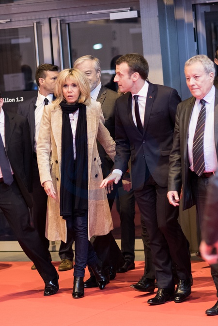 Brigitte Macron i Emmanuel Macron na targach ksiazki
