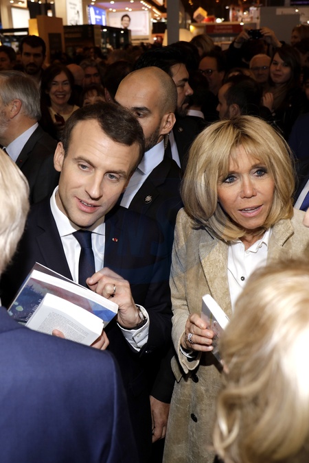 Brigitte Macron i Emmanuel Macron na targach ksiazki