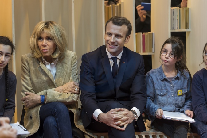 Brigitte Macron i Emmanuel Macron na targach ksiazki