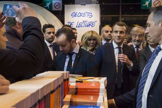 Brigitte Macron i Emmanuel Macron na targach ksiazki