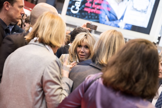 Brigitte Macron i Emmanuel Macron na targach ksiazki