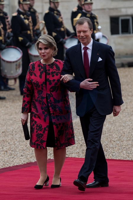 Macronowie podczas spotkania z para ksiazeca Luksemburga