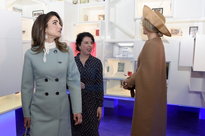 Krolowa Rania i krolowa Maxima odwiedzily Gemeentemuseum, Haga
