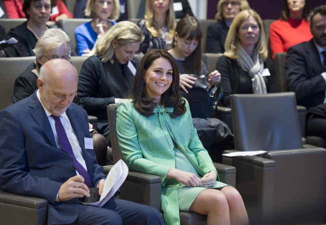 Ksiezna Kate w zielonym plaszczyku z kokarda