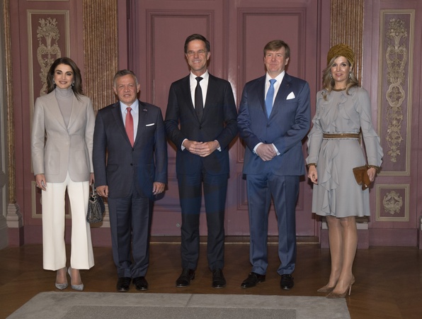 Krolowa Rania, krol Jordanii Abdullah II, premier Holandii Mark Rutte, krol Willem-Alexander, krolowa Maxima