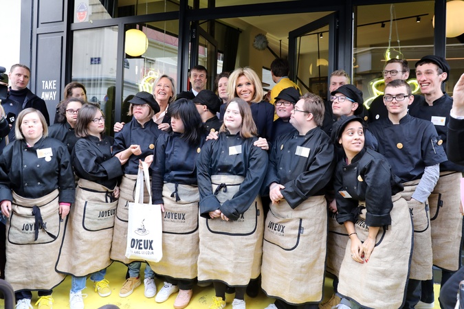 Brigitte Macron w restauracji obslugiwanej przez niepelnosprawnych - Joyeux, servi avec le coeur