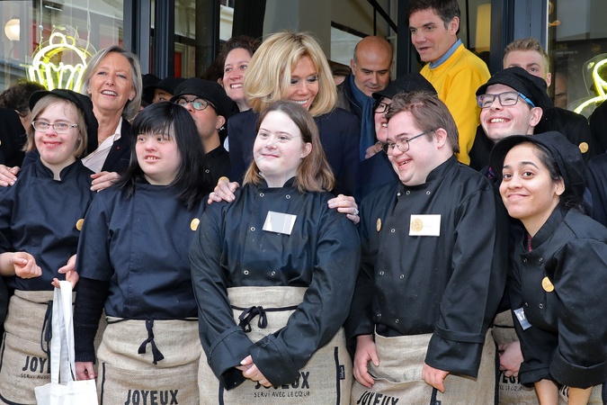 Brigitte Macron w restauracji obslugiwanej przez niepelnosprawnych - Joyeux, servi avec le coeur