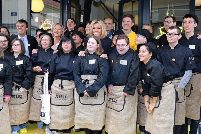 Brigitte Macron w restauracji obslugiwanej przez niepelnosprawnych - Joyeux, servi avec le coeur
