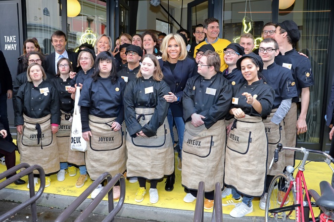 Brigitte Macron w restauracji obslugiwanej przez niepelnosprawnych - Joyeux, servi avec le coeur