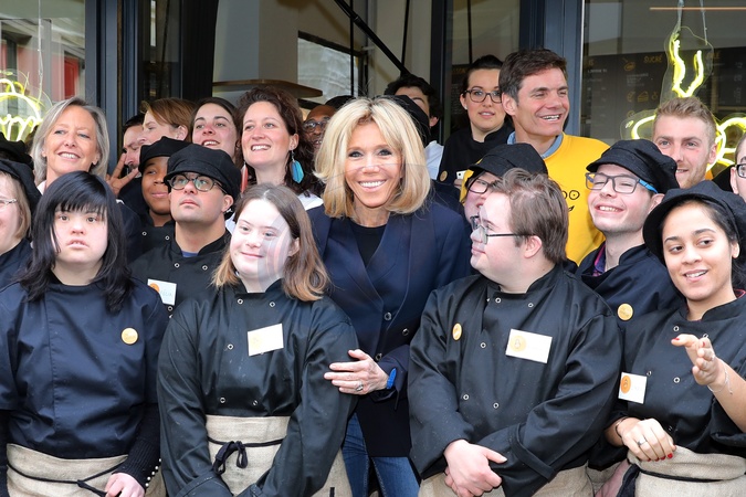 Brigitte Macron w restauracji obslugiwanej przez niepelnosprawnych - Joyeux, servi avec le coeur