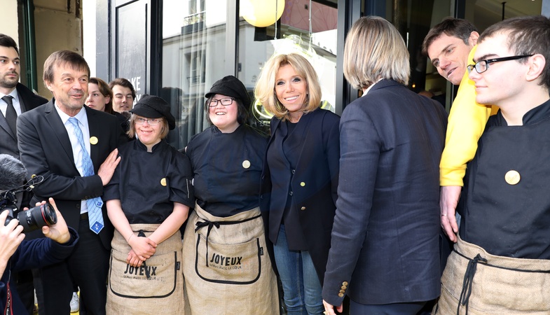 Brigitte Macron w restauracji obslugiwanej przez niepelnosprawnych - Joyeux, servi avec le coeur