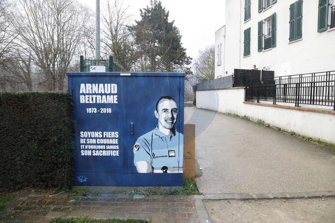 Arnaud Beltrame, zmarly, francuski policjant bohaterem graffiti