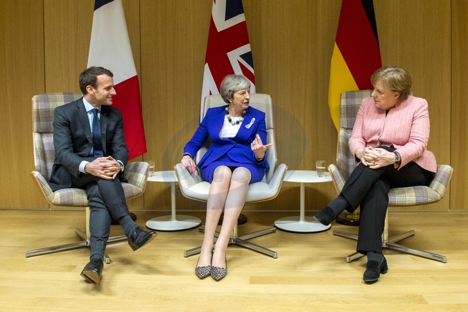 Theresa May, Emmanuel Macron, Angela Merkel