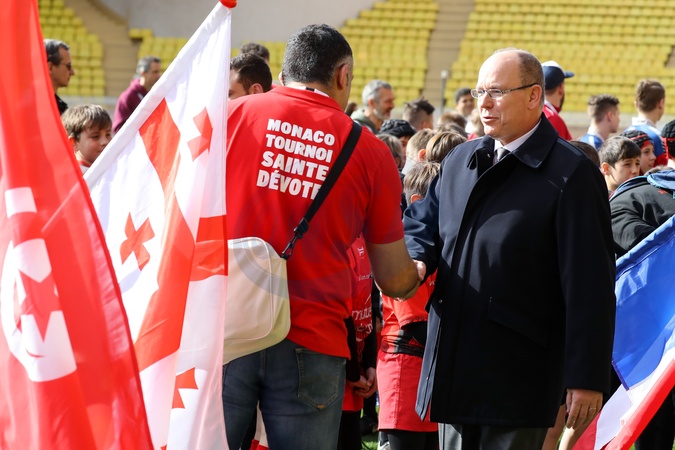 Ksiaze i ksiezna Monako z dziecmii na turnieju rugby - Sainte Devote Rugby Tournament