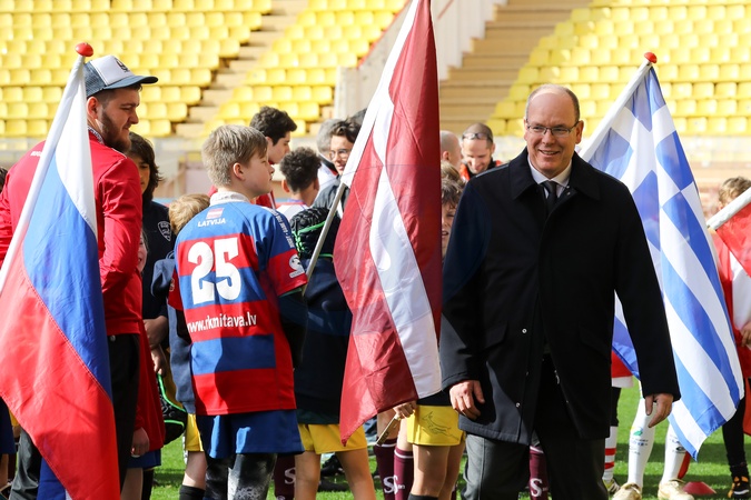 Ksiaze i ksiezna Monako z dziecmii na turnieju rugby - Sainte Devote Rugby Tournament