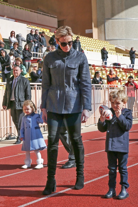 Ksiaze i ksiezna Monako z dziecmii na turnieju rugby - Sainte Devote Rugby Tournament