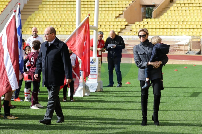 Ksiaze i ksiezna Monako z dziecmii na turnieju rugby - Sainte Devote Rugby Tournament