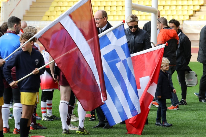 Ksiaze i ksiezna Monako z dziecmii na turnieju rugby - Sainte Devote Rugby Tournament