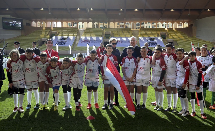 Ksiaze i ksiezna Monako z dziecmii na turnieju rugby - Sainte Devote Rugby Tournament