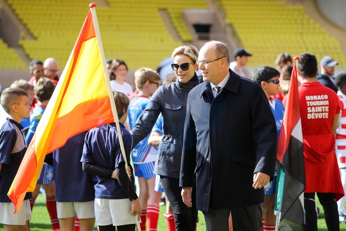Ksiaze i ksiezna Monako z dziecmii na turnieju rugby - Sainte Devote Rugby Tournament