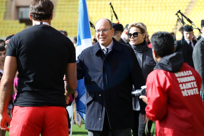Ksiaze i ksiezna Monako z dziecmii na turnieju rugby - Sainte Devote Rugby Tournament
