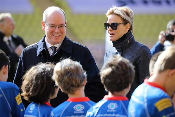 Ksiaze i ksiezna Monako z dziecmii na turnieju rugby - Sainte Devote Rugby Tournament