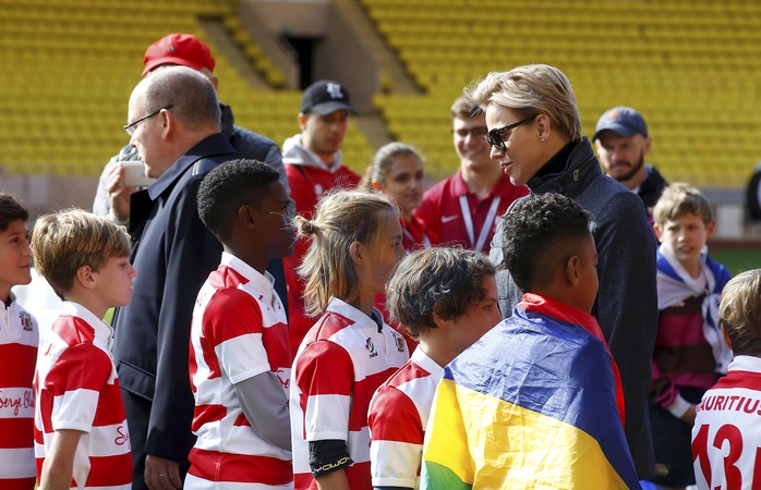 Ksiaze i ksiezna Monako z dziecmii na turnieju rugby - Sainte Devote Rugby Tournament