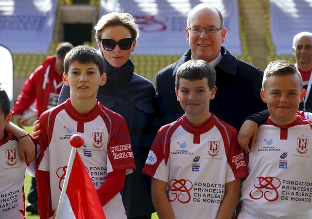 Ksiaze i ksiezna Monako z dziecmii na turnieju rugby - Sainte Devote Rugby Tournament