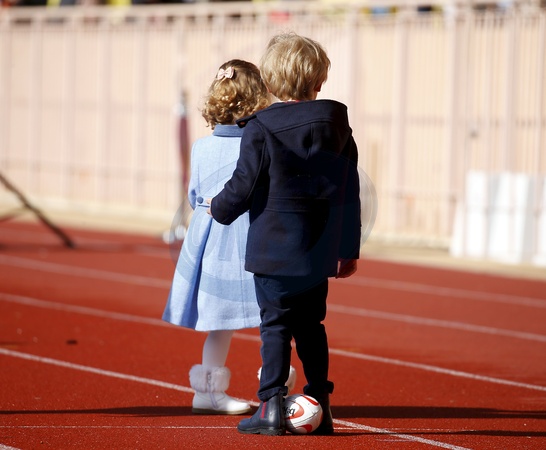 Ksiaze i ksiezna Monako z dziecmii na turnieju rugby - Sainte Devote Rugby Tournament