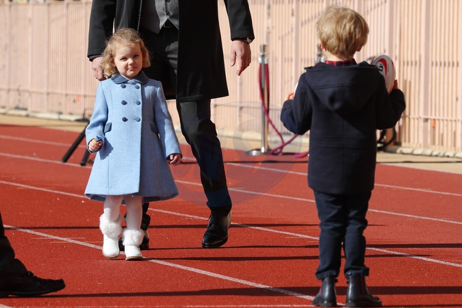 Ksiaze i ksiezna Monako z dziecmii na turnieju rugby - Sainte Devote Rugby Tournament