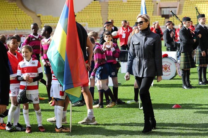 Ksiaze i ksiezna Monako z dziecmii na turnieju rugby - Sainte Devote Rugby Tournament