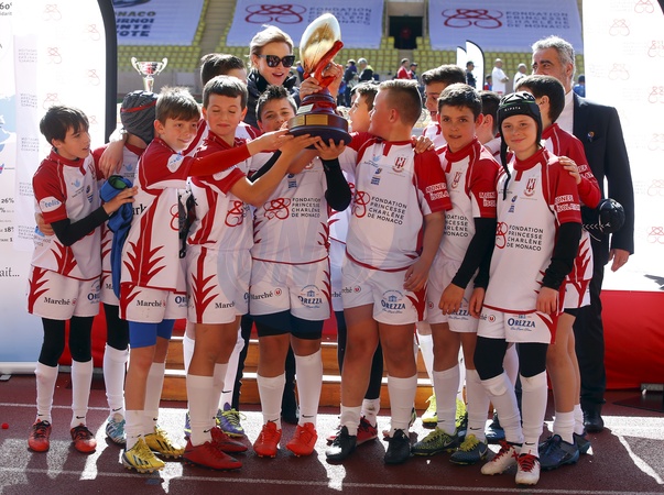 Ksiaze i ksiezna Monako z dziecmii na turnieju rugby - Sainte Devote Rugby Tournament