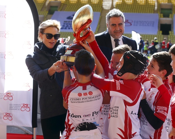 Ksiaze i ksiezna Monako z dziecmii na turnieju rugby - Sainte Devote Rugby Tournament