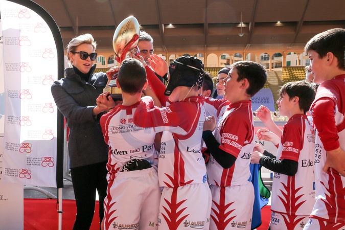 Ksiaze i ksiezna Monako z dziecmii na turnieju rugby - Sainte Devote Rugby Tournament