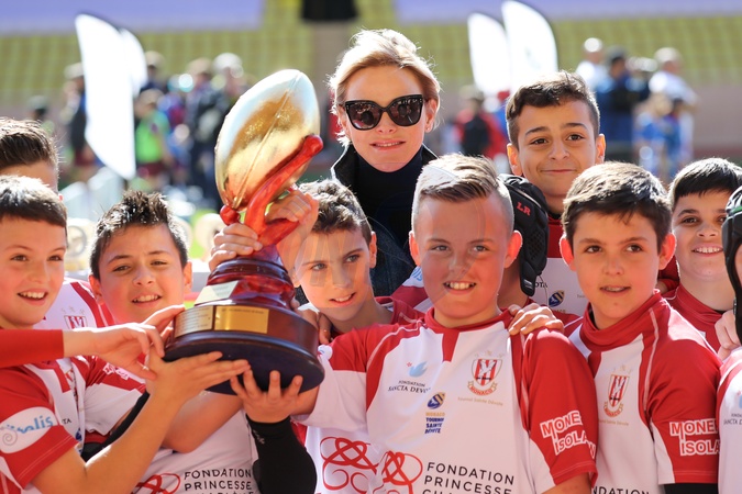 Ksiaze i ksiezna Monako z dziecmii na turnieju rugby - Sainte Devote Rugby Tournament