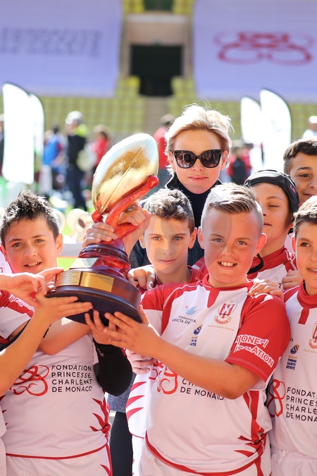 Ksiaze i ksiezna Monako z dziecmii na turnieju rugby - Sainte Devote Rugby Tournament