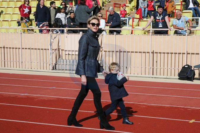 Ksiaze i ksiezna Monako z dziecmii na turnieju rugby - Sainte Devote Rugby Tournament