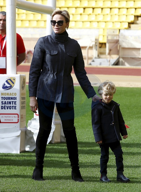 Ksiaze i ksiezna Monako z dziecmii na turnieju rugby - Sainte Devote Rugby Tournament